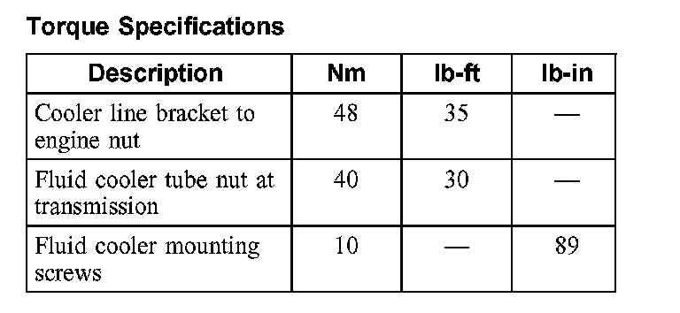 Torque Specifications: