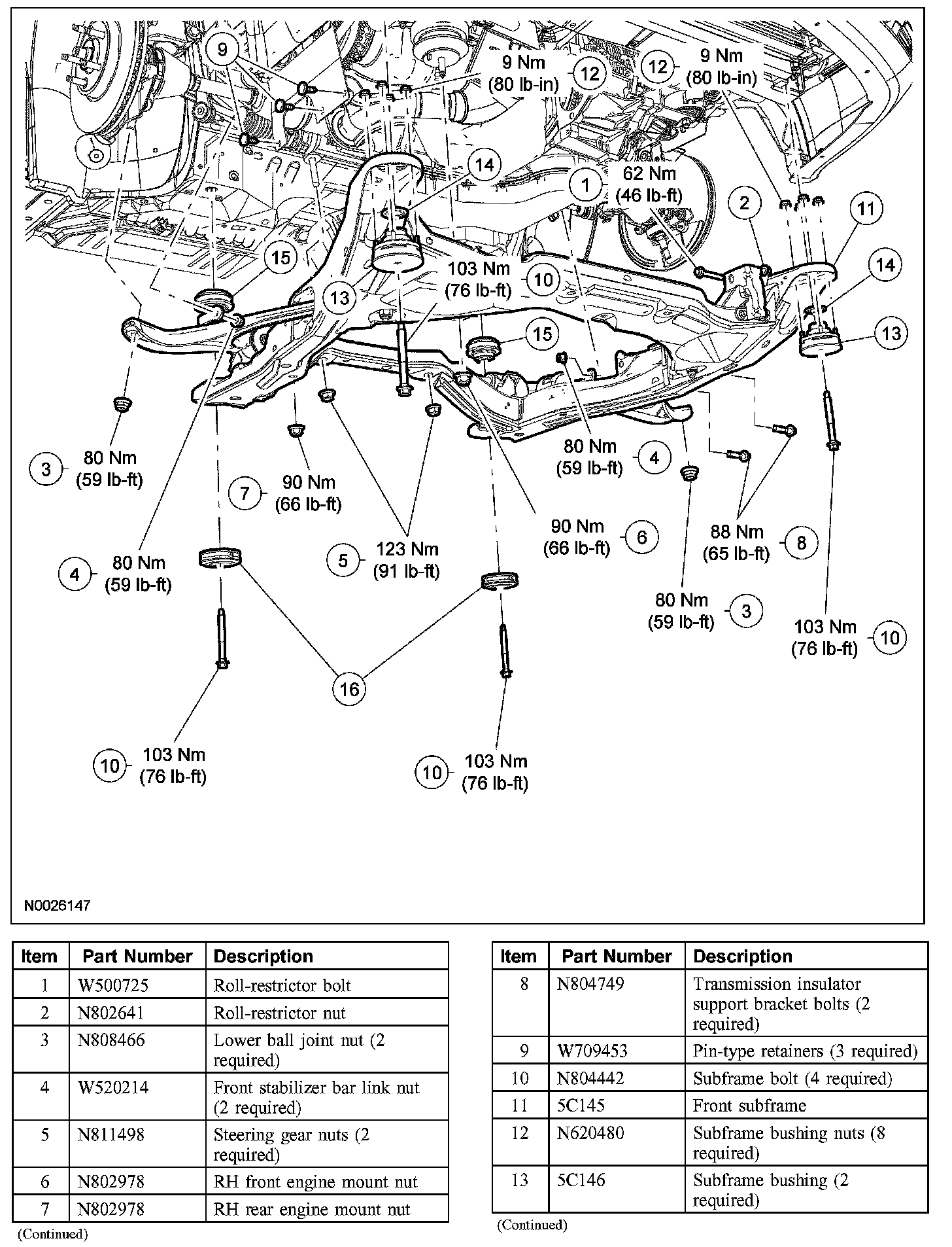 22. NOTE: When installing the subframe bolts, tighten in sequence starting with the LH front, the RH front, and both rear bolts.