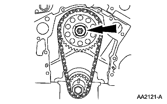 3. Remove the camshaft sprocket bolt.