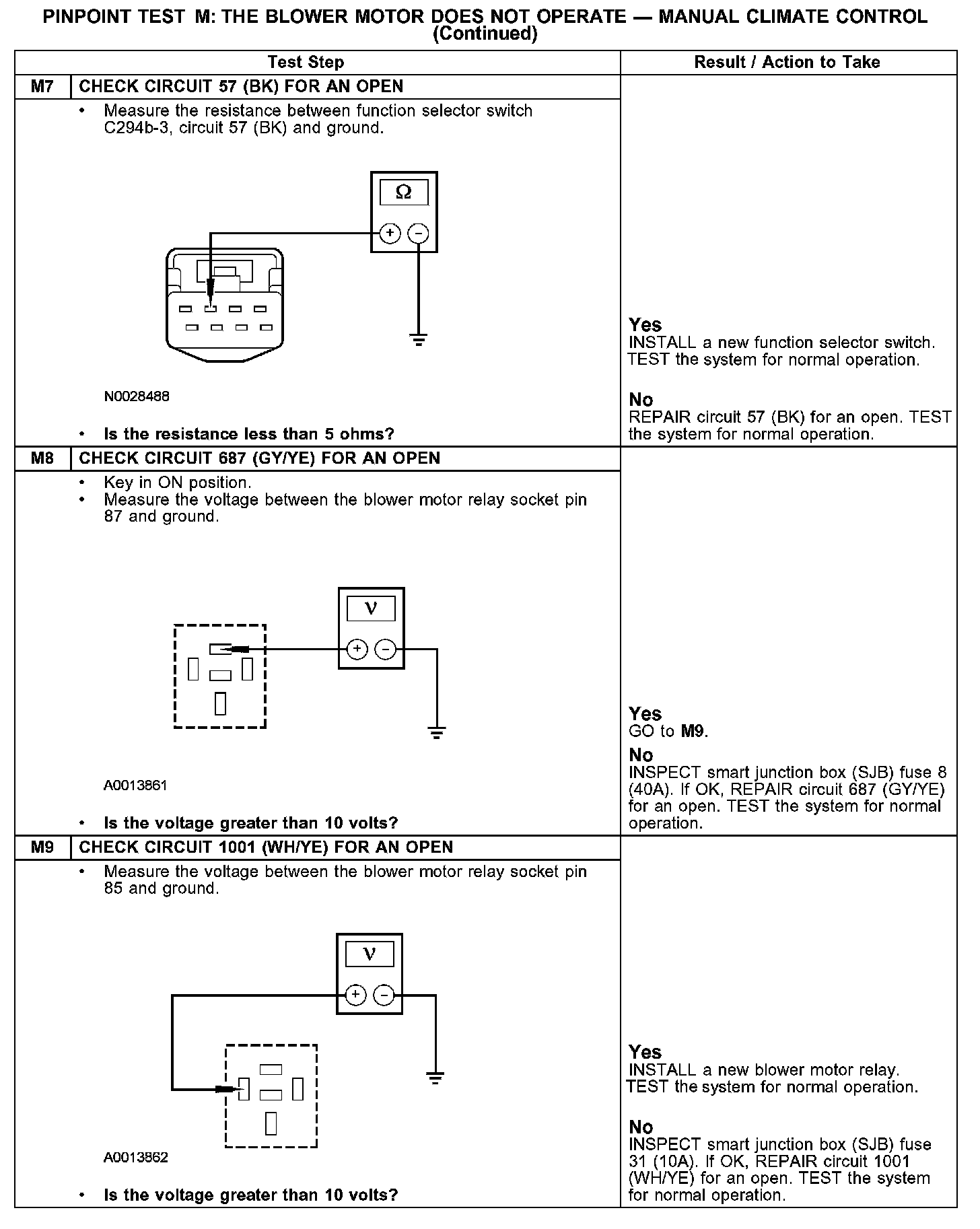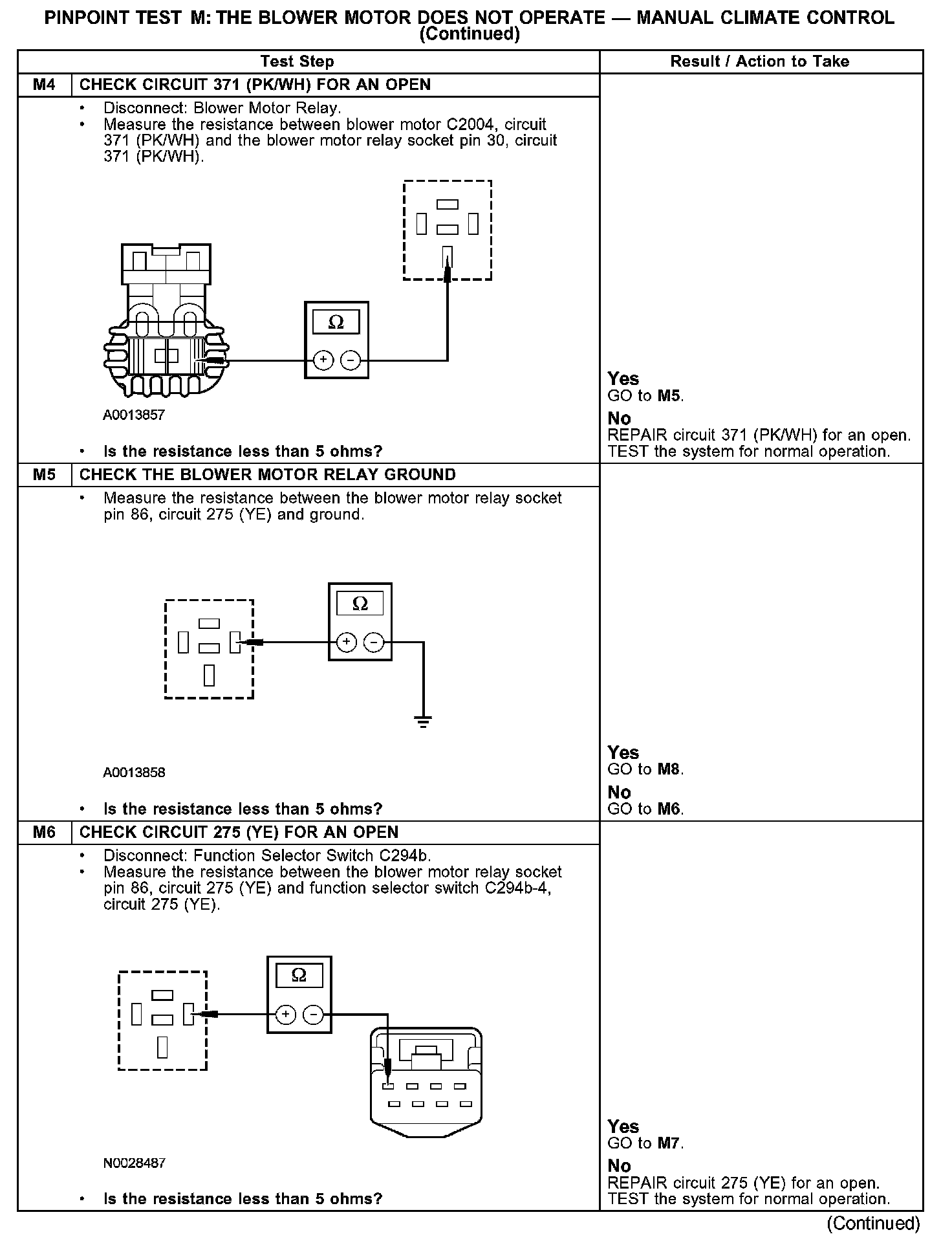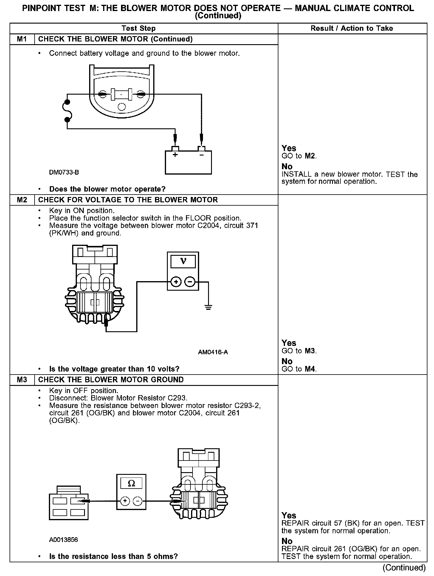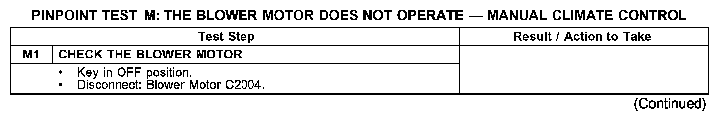 PINPOINT TEST M: THE BLOWER MOTOR DOES NOT OPERATE - MANUAL CLIMATE CONTROLM1: