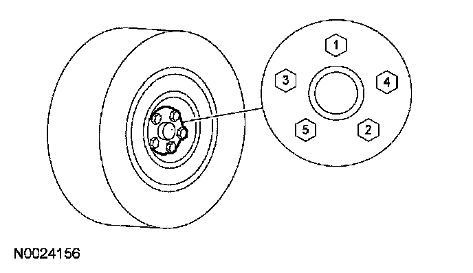 4. Remove the 5 wheel nuts and the wheel and tire assembly.