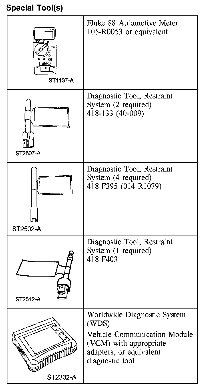 RESTRAINT SYSTEM DIAGNOSTIC TOOL WARNINGSpecial Tool(s):