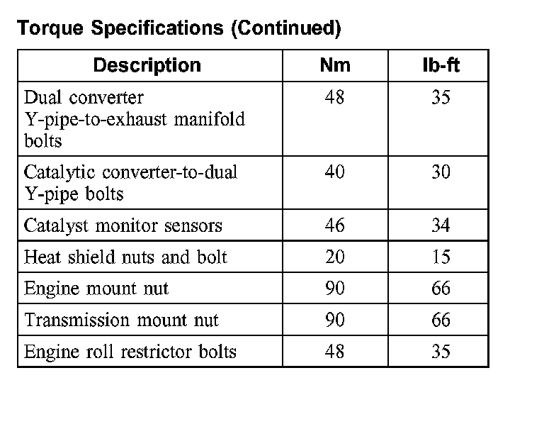 Torque Specifications:
