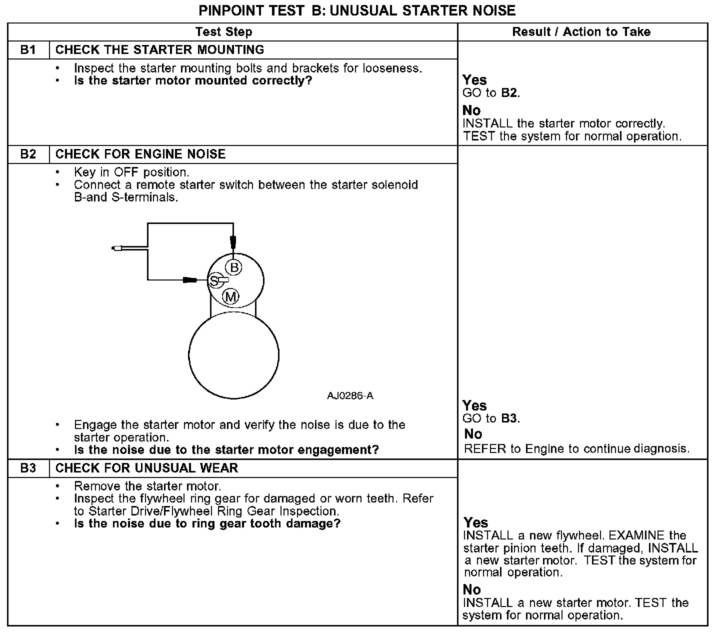 PINPOINT TEST B: UNUSUAL STARTER NOISE