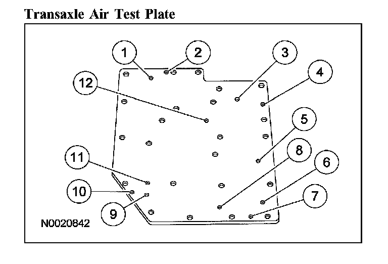 3. Install Transmission Test Plate and Gasket. Tighten bolts to 10 - 12 Nm (88 - 106 inch lbs.).