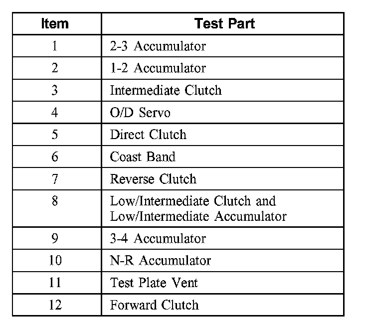 Follow the procedure to determine the location of the inoperative clutch or band by introducing air pressure into the various test plate passages.
