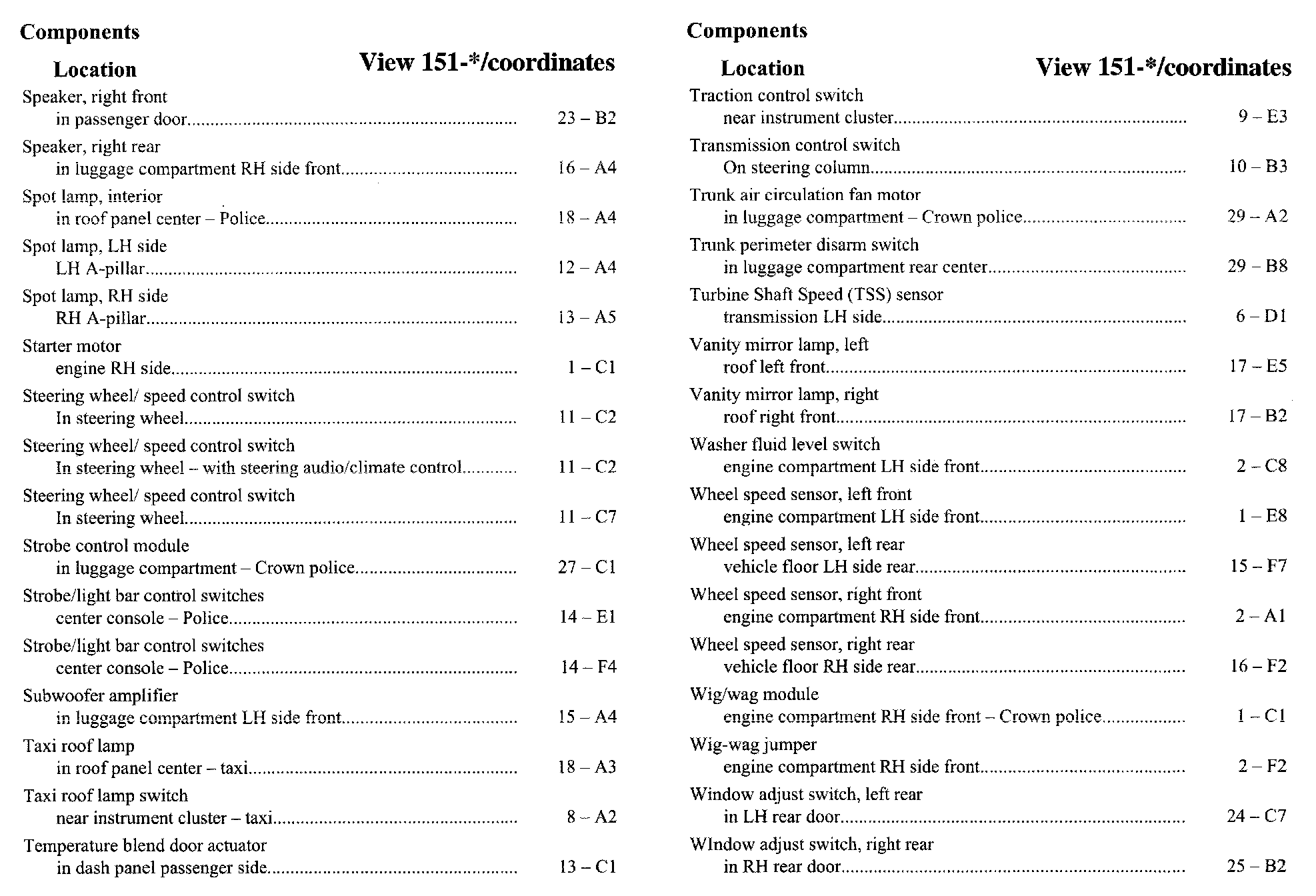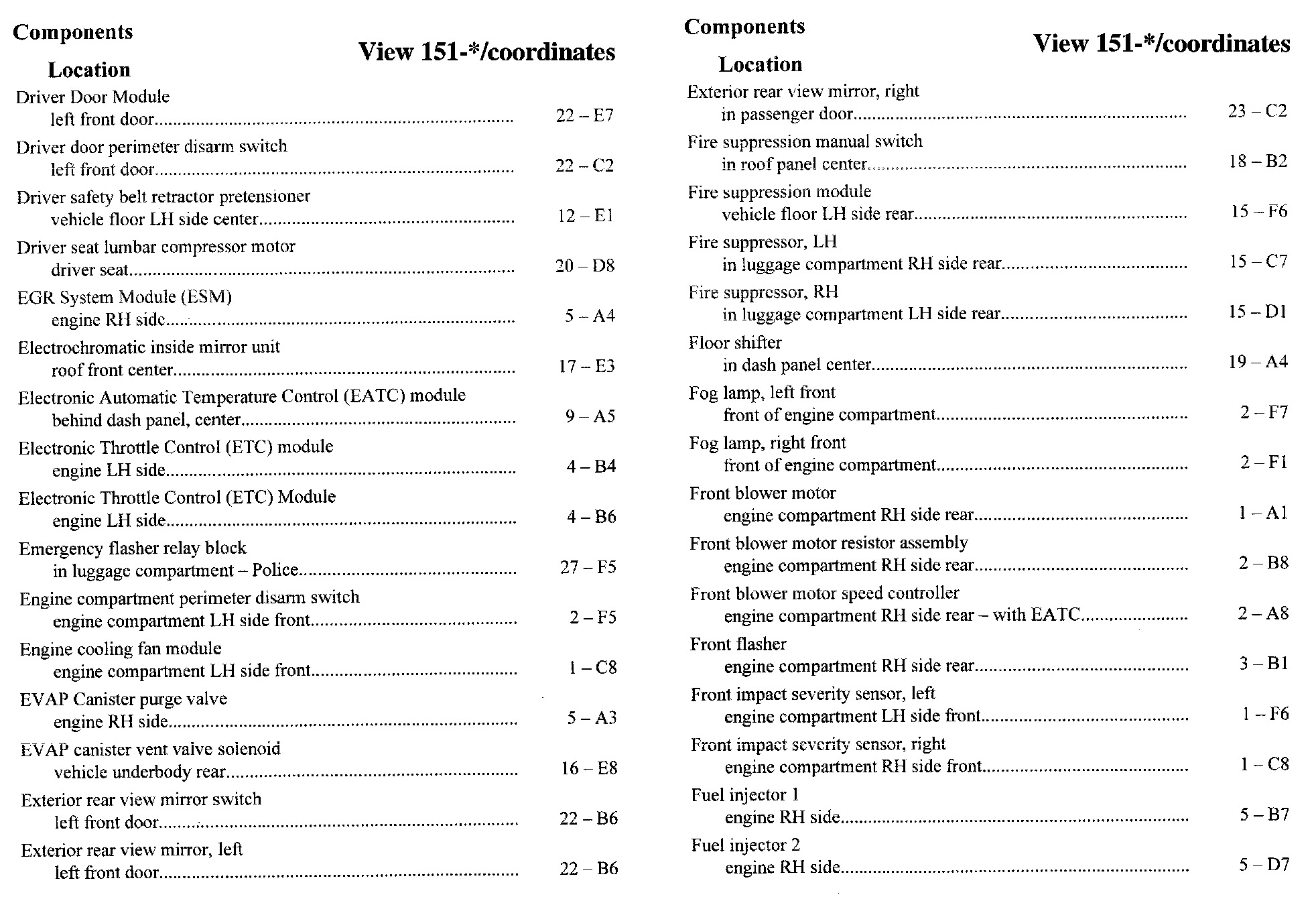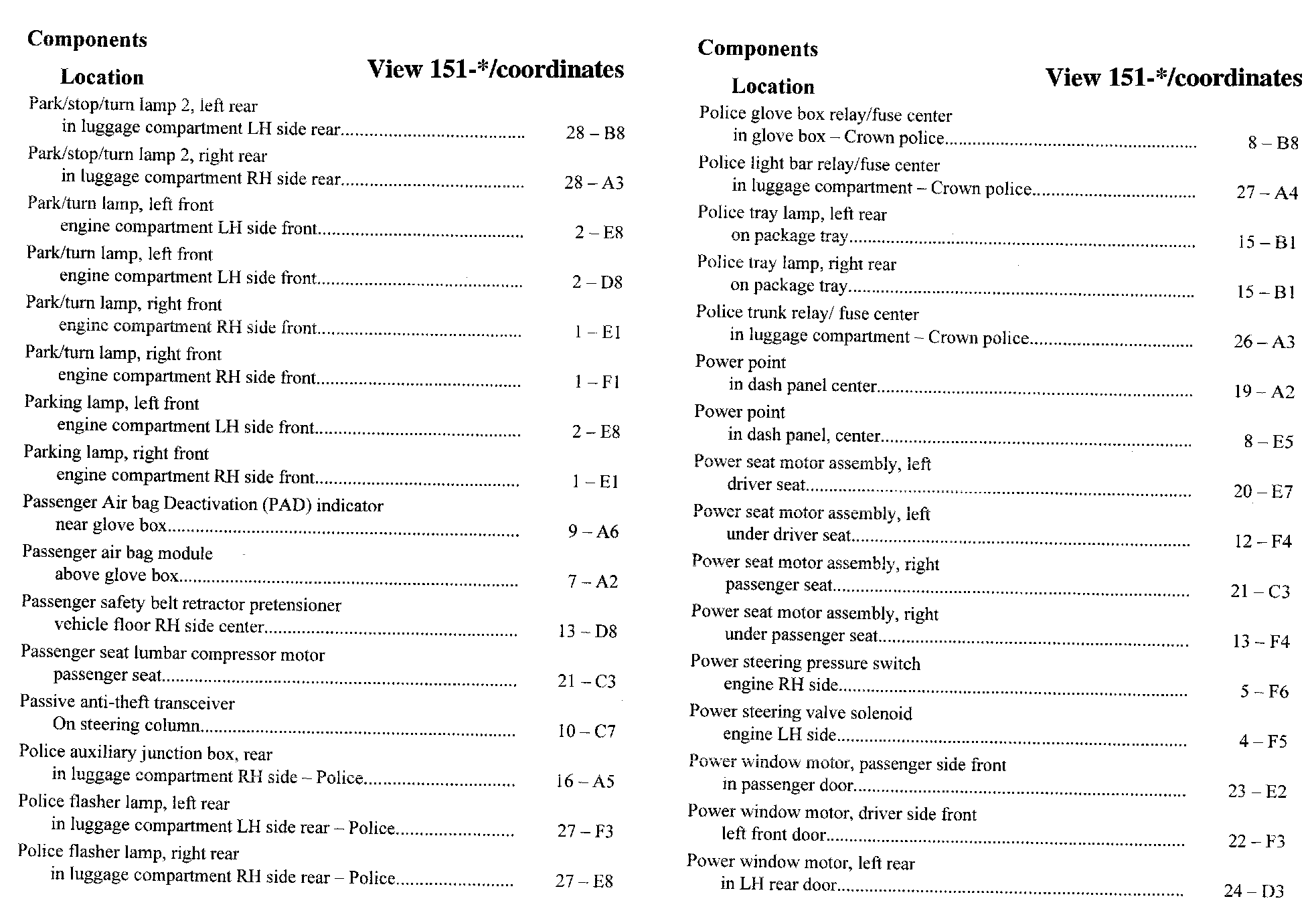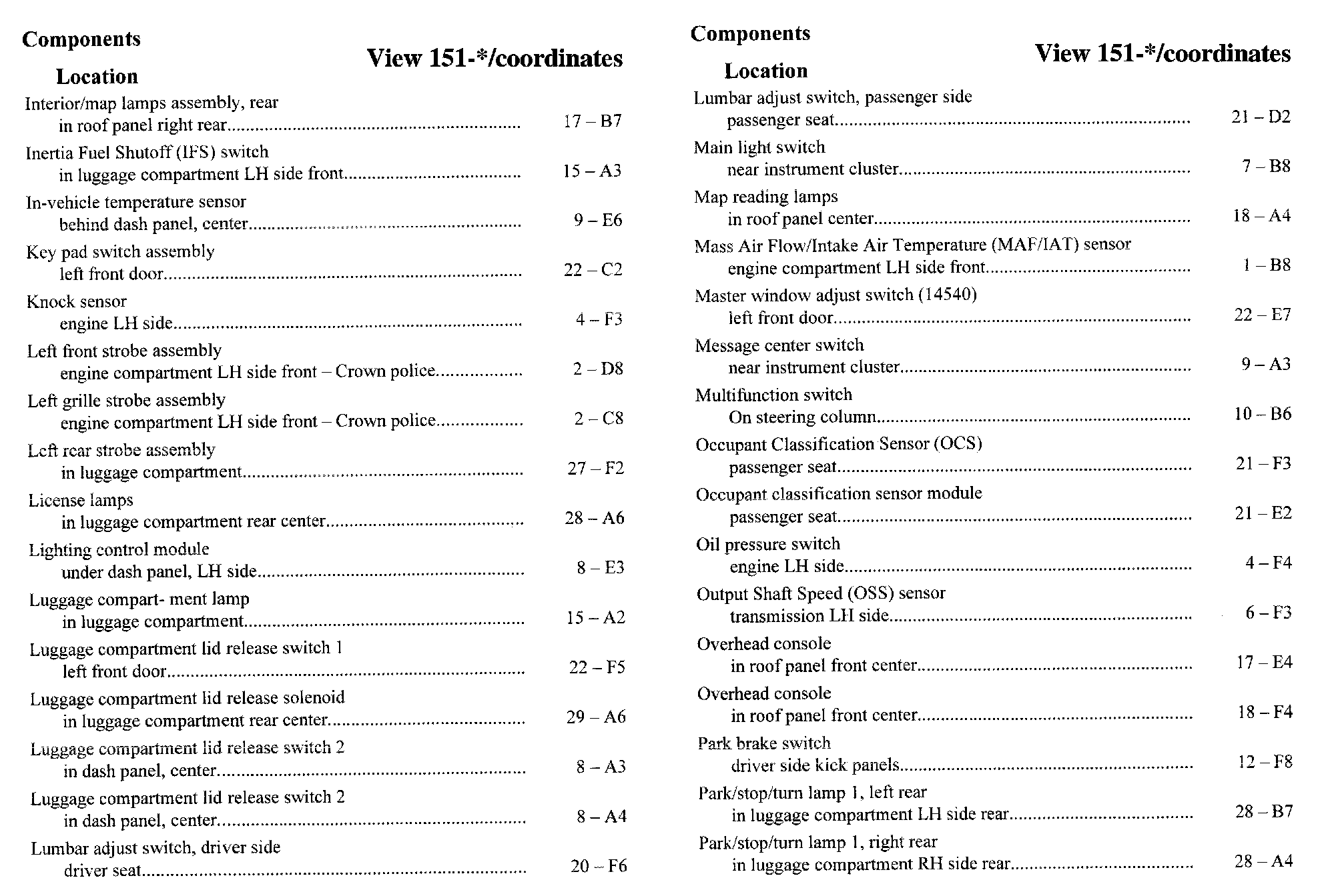 Component Location Index