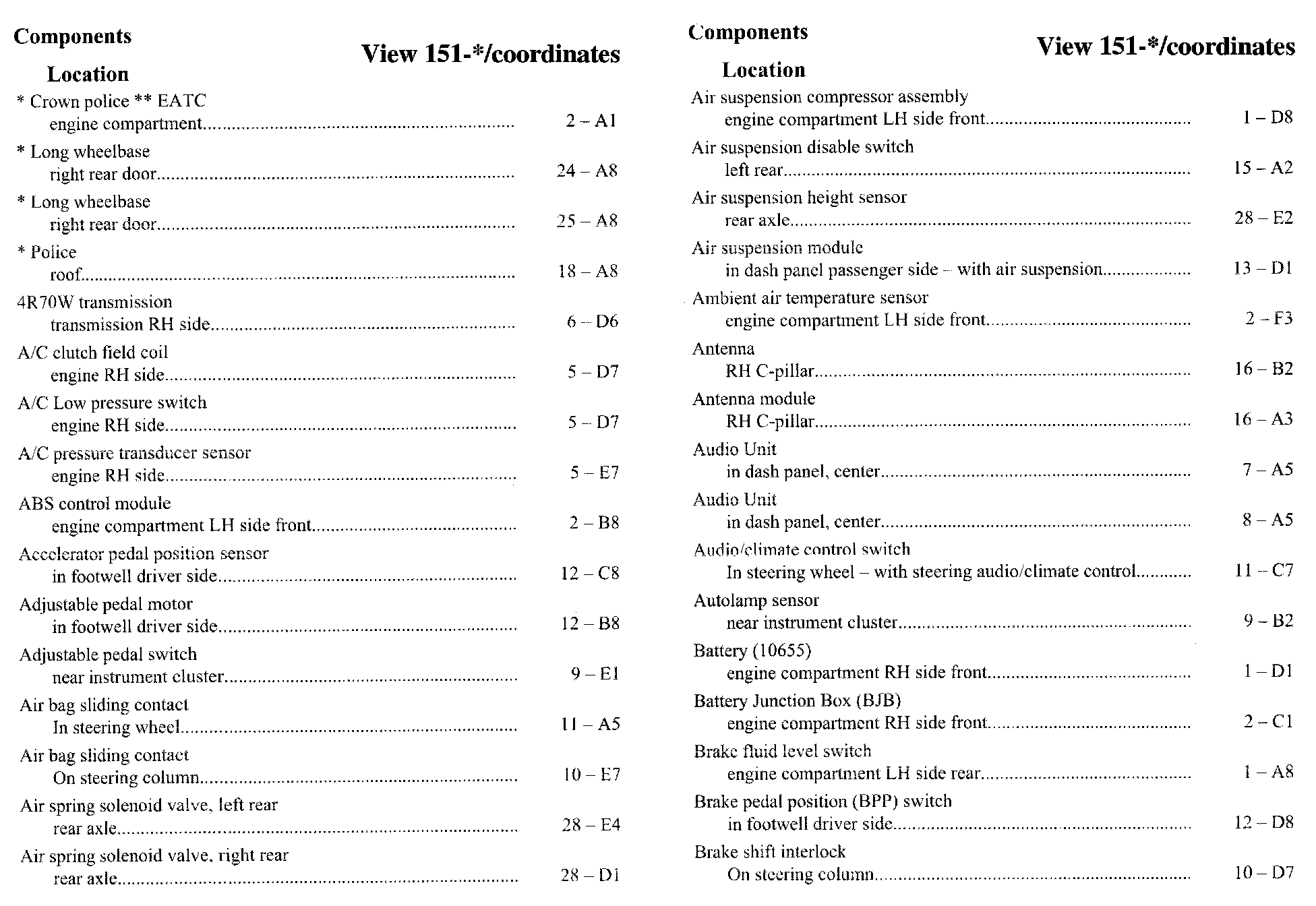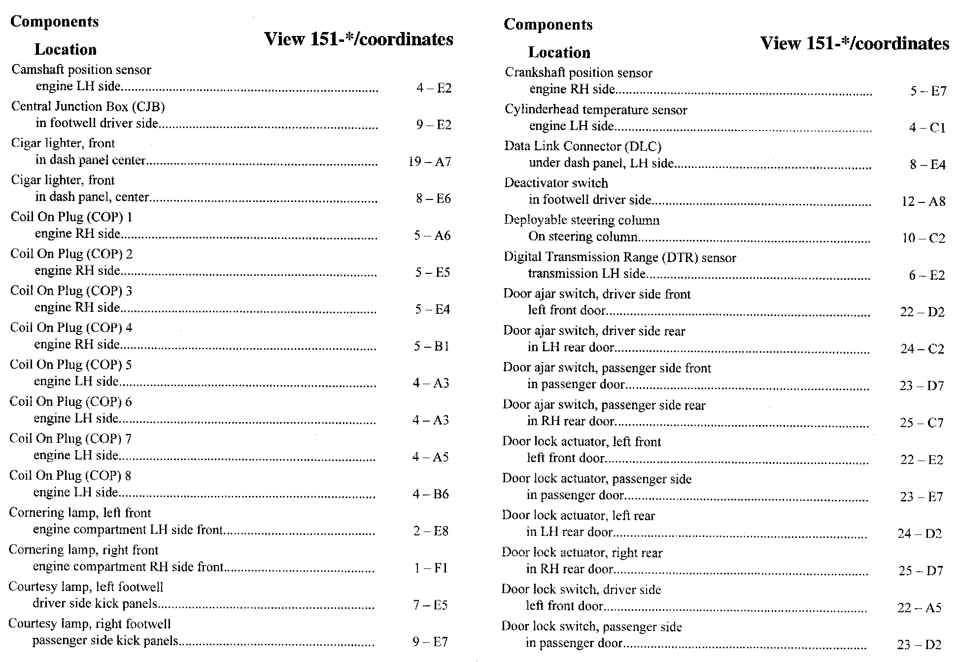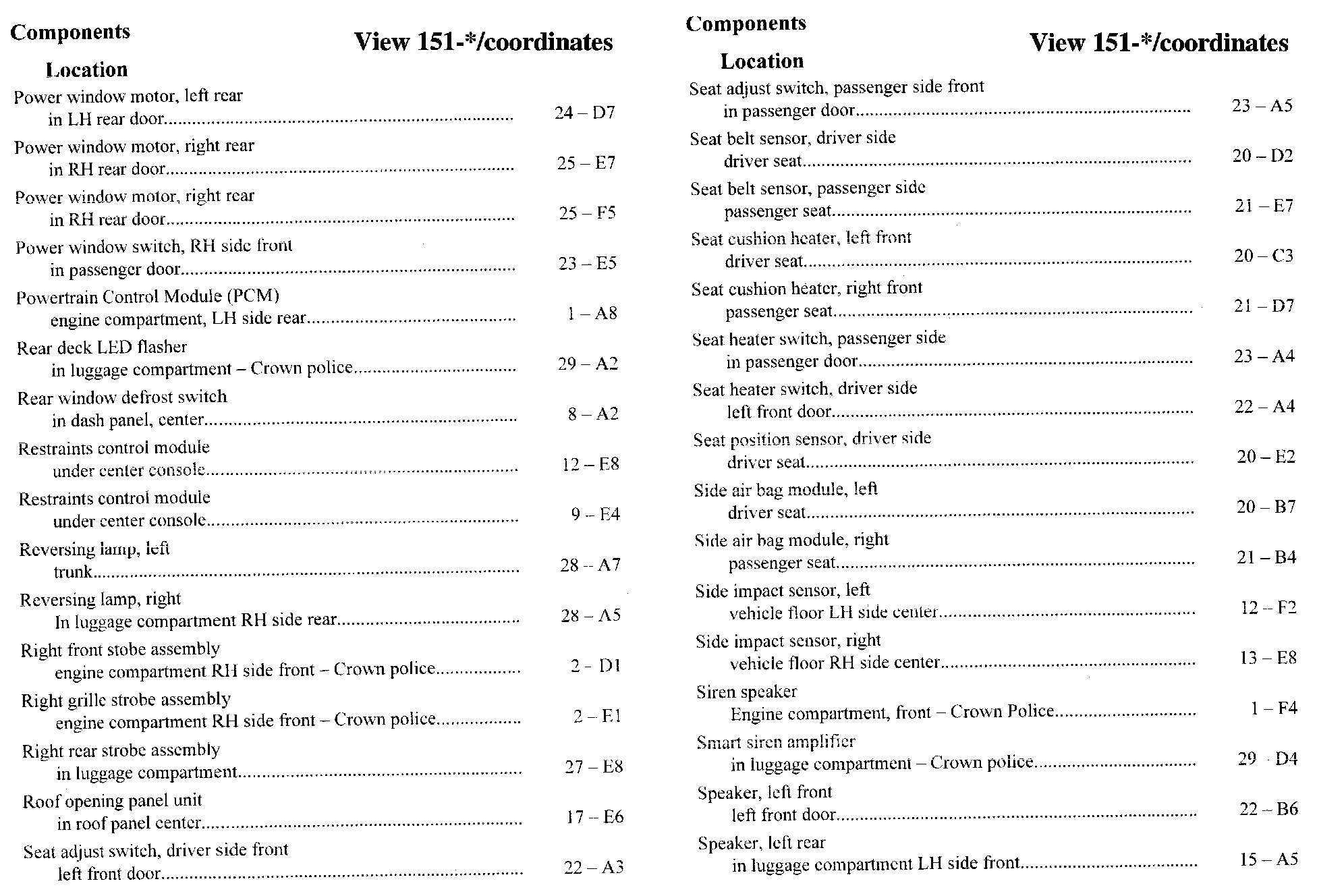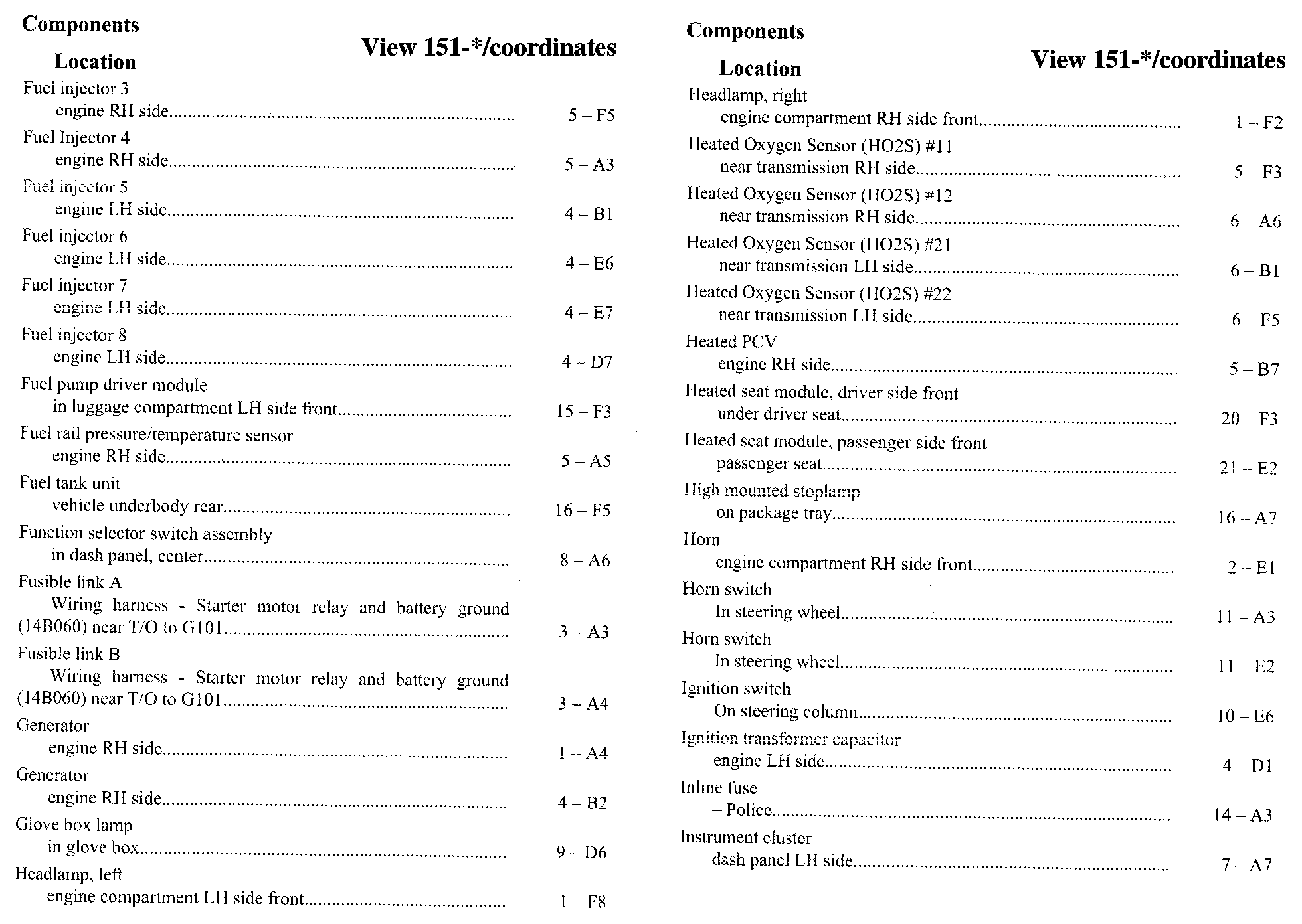 Component Location Index