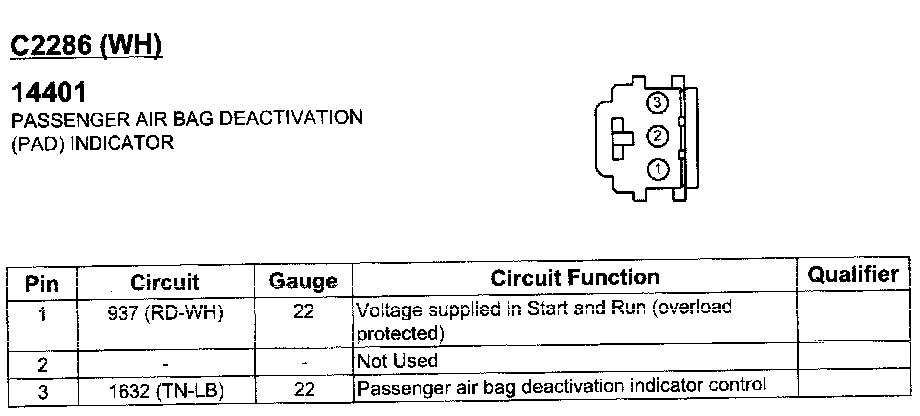 Air Bag Deactivation Indicator