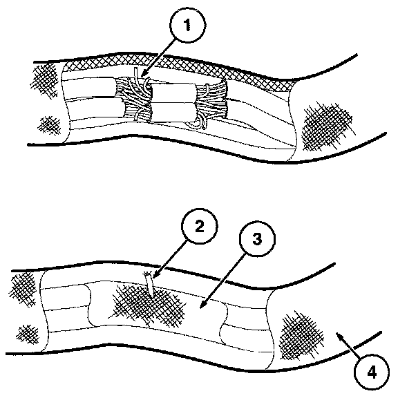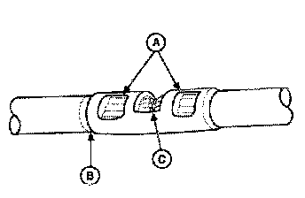 13. Use shielded heat gun to heat the repaired area until adhesive flows out of both ends of the heat shrink tubing.