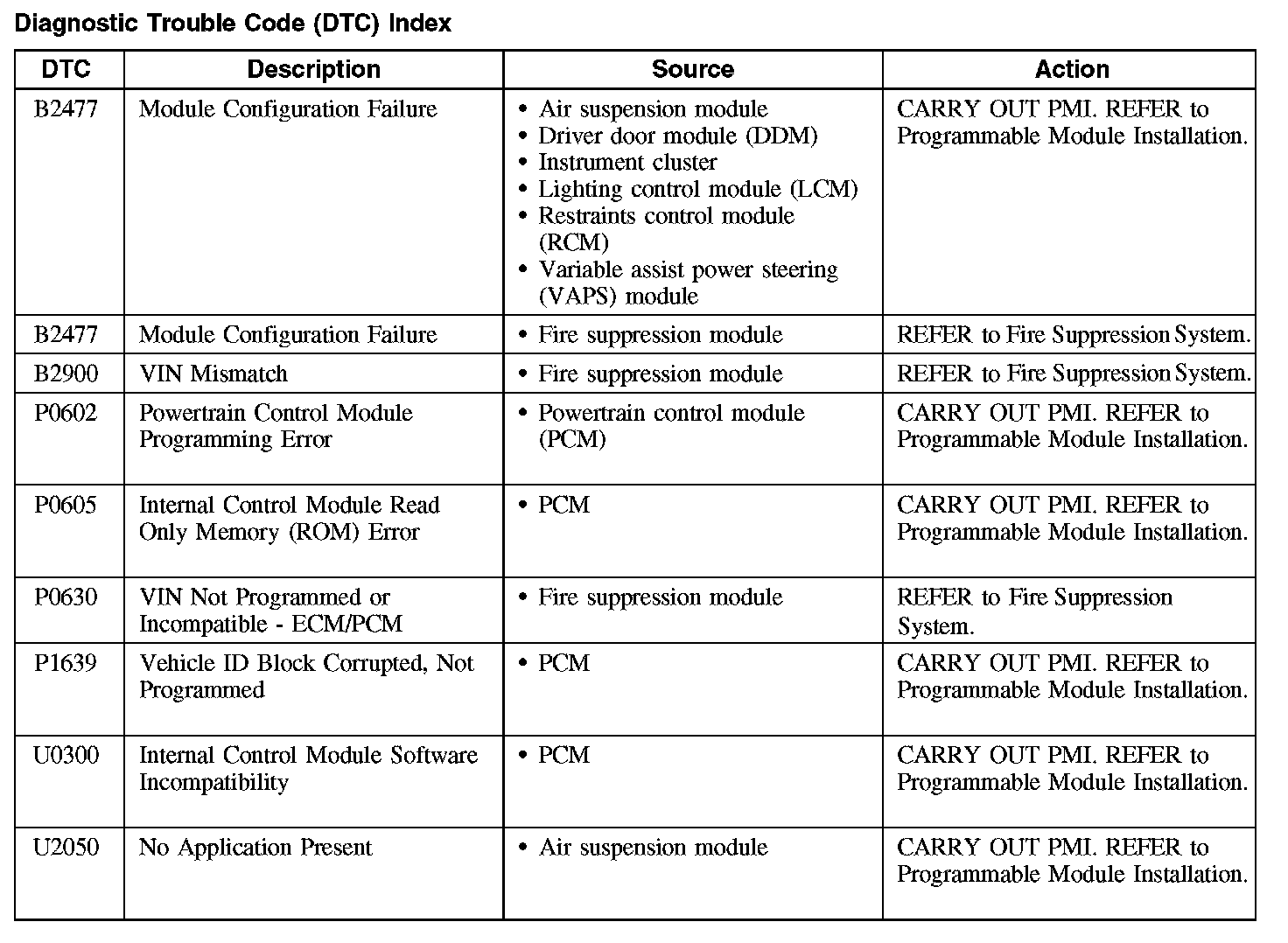 B2477-B2900 / P0602-P1639 / U0300-U2050: