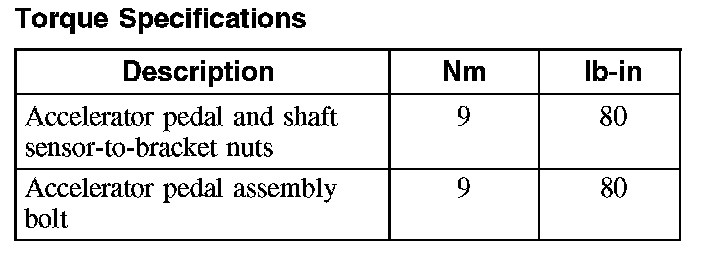 Accelerator Pedal: Specifications