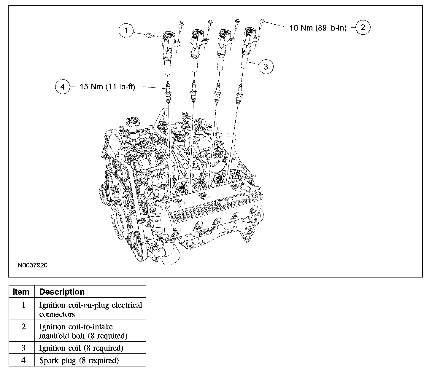 2. NOTE: Use compressed air to remove any foreign material from the spark plug well before removing the spark plugs.