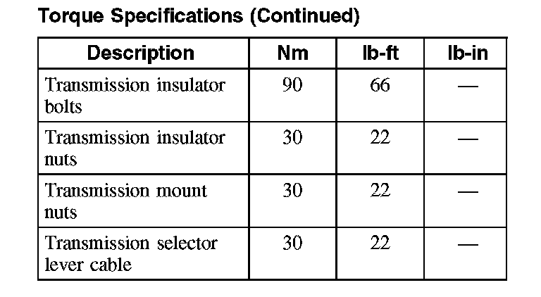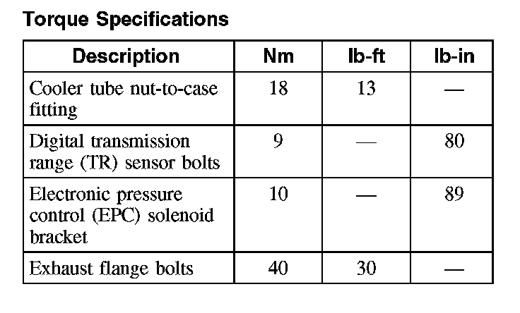 Torque Specifications: