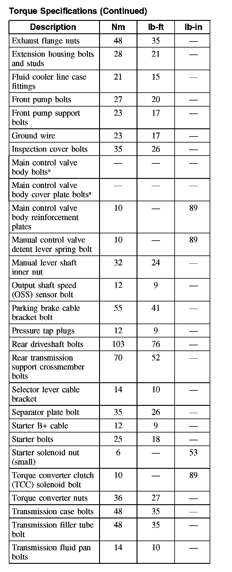 Torque Specifications