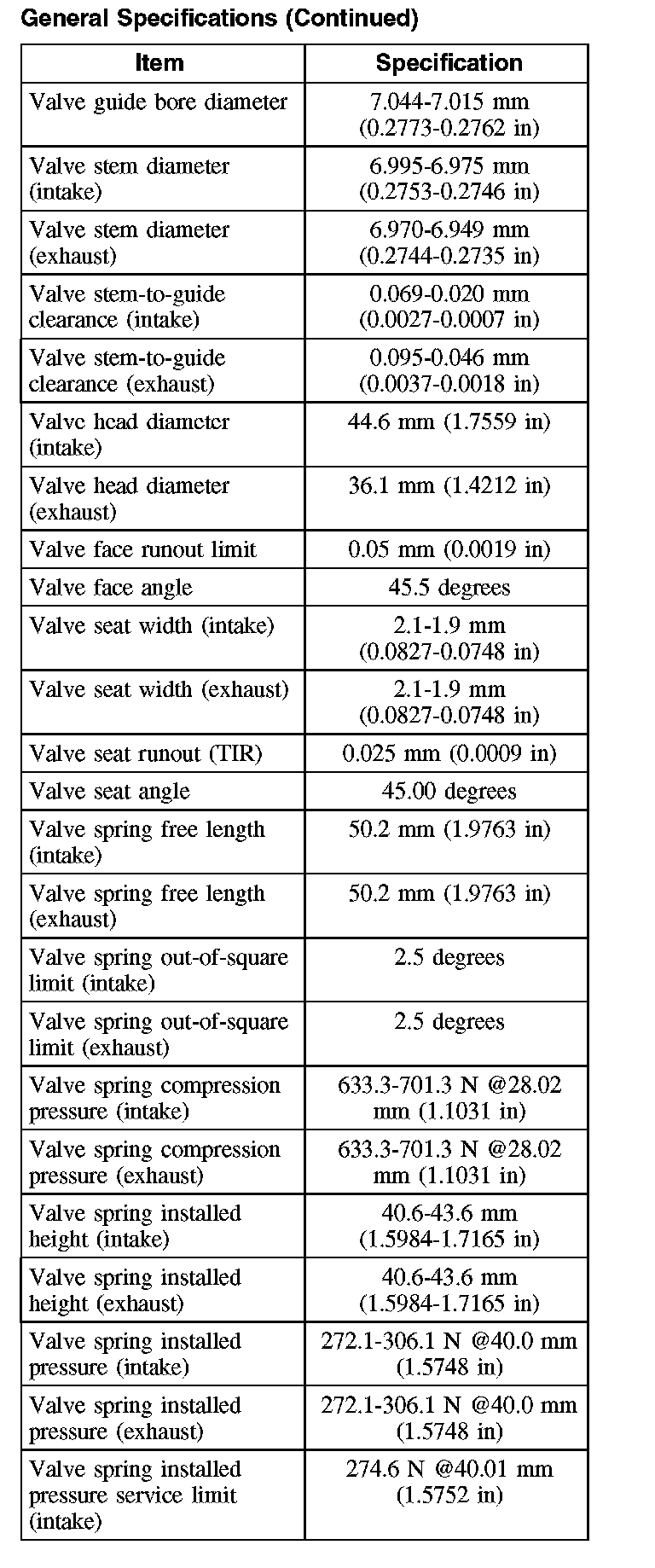 General Specifications