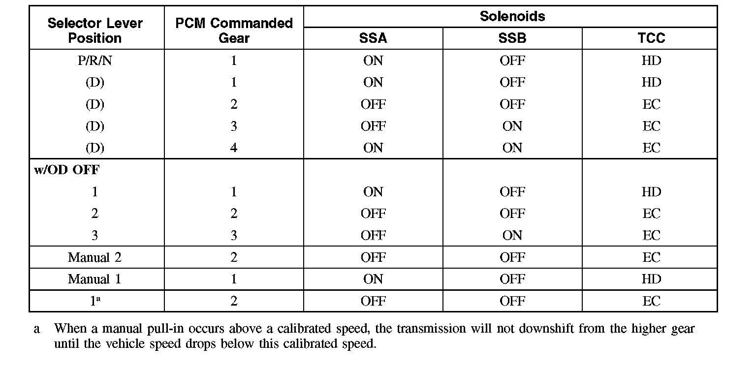 Using all of these input signals, the PCM can determine when the time and conditions are right for a shift, or when to apply or release the torque converter clutch (TCC). It will also determine the best line pressure needed to optimize shift feel. To accomplish this, the PCM uses hydraulic solenoids to control transmission operation.
