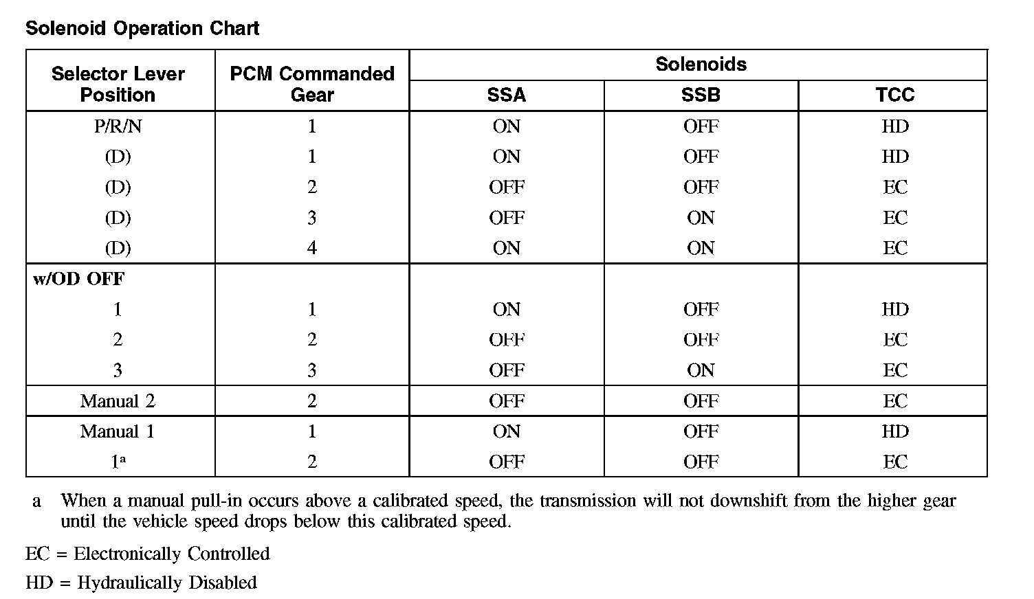 Solenoid Operation Chart: