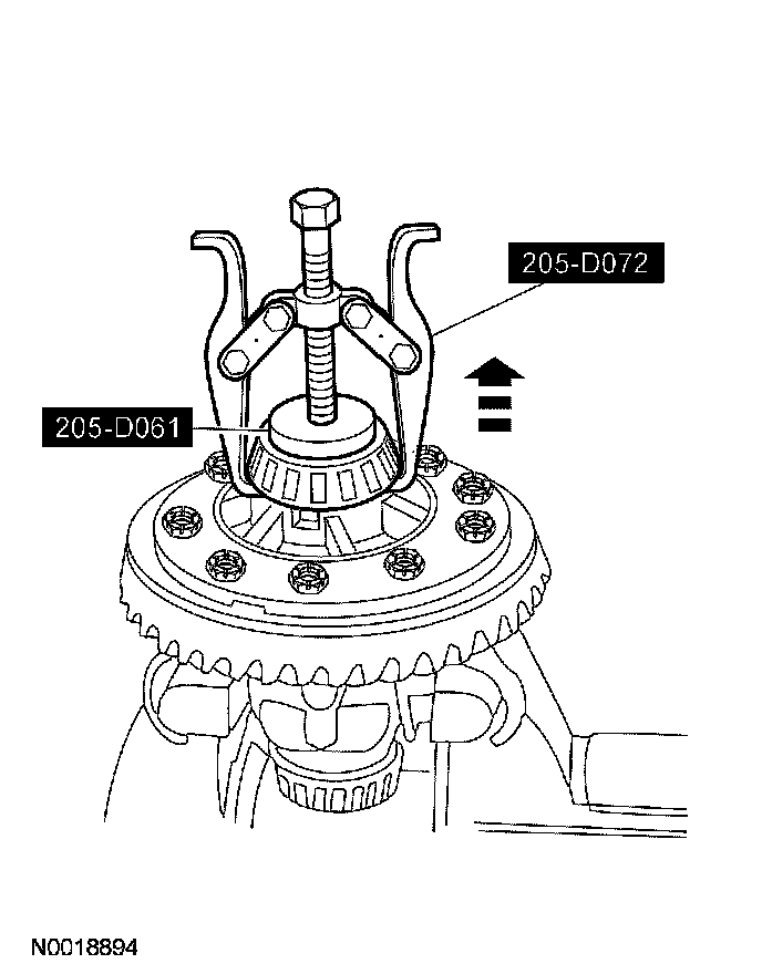 17. Using the special tool, fully seat the differential bearing shims. Make sure the assembly rotates freely.