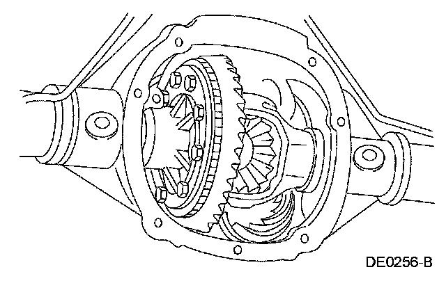 1 Rotate the differential case to verify that the differential bearings have seated correctly.