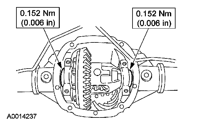 16. To establish differential bearing preload, increase both left and right differential bearing shim sizes by the specification shown.