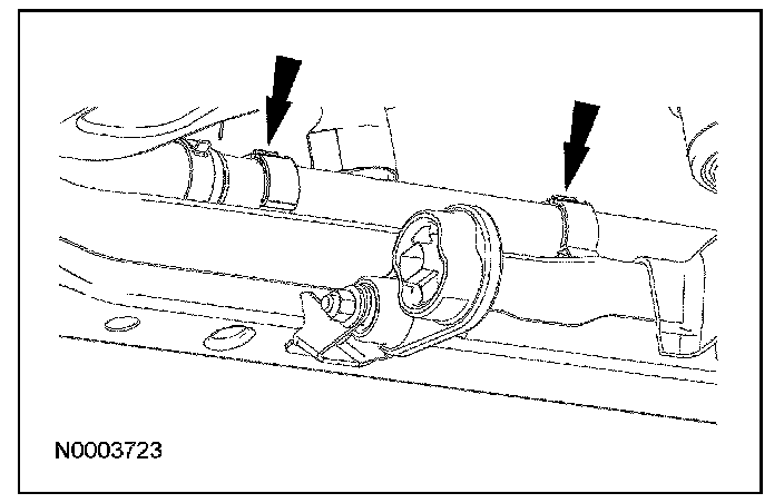 25. CAUTION: Make sure that the intermediate shaft boot bearing clamp is retained in the open position when removing and installing the clamp, boot bearing or boot assembly.