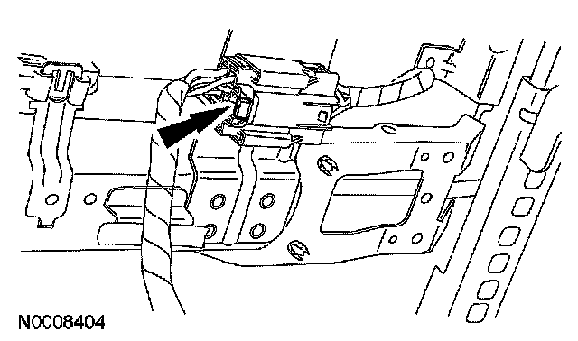 4. Disconnect the belt tension sensor (BTS) electrical connector, remove the nut and separate the safety belt anchor with BTS from the seat mounting stud.