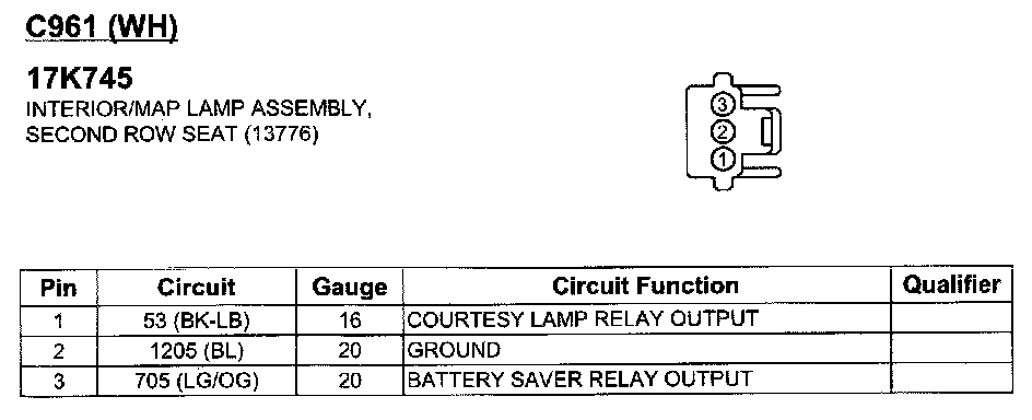 Interior/MAP Lamp Assembly, Second Row Seat