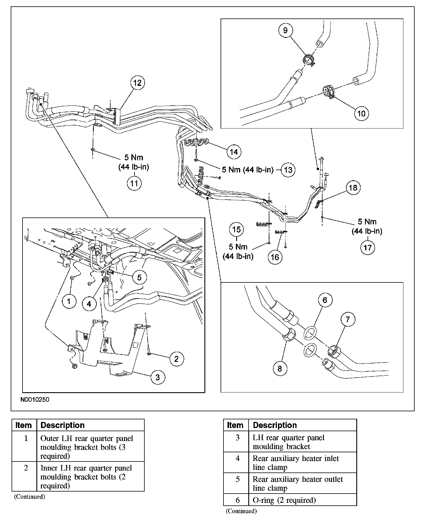 - The auxiliary heater inlet and outlet lines are not supplied together as an assembly. The auxiliary heater inlet line and outlet line are each installed from the factory as one-piece assemblies. The replacement parts are supplied as separate kits containing 2-piece lines for ease of installation.