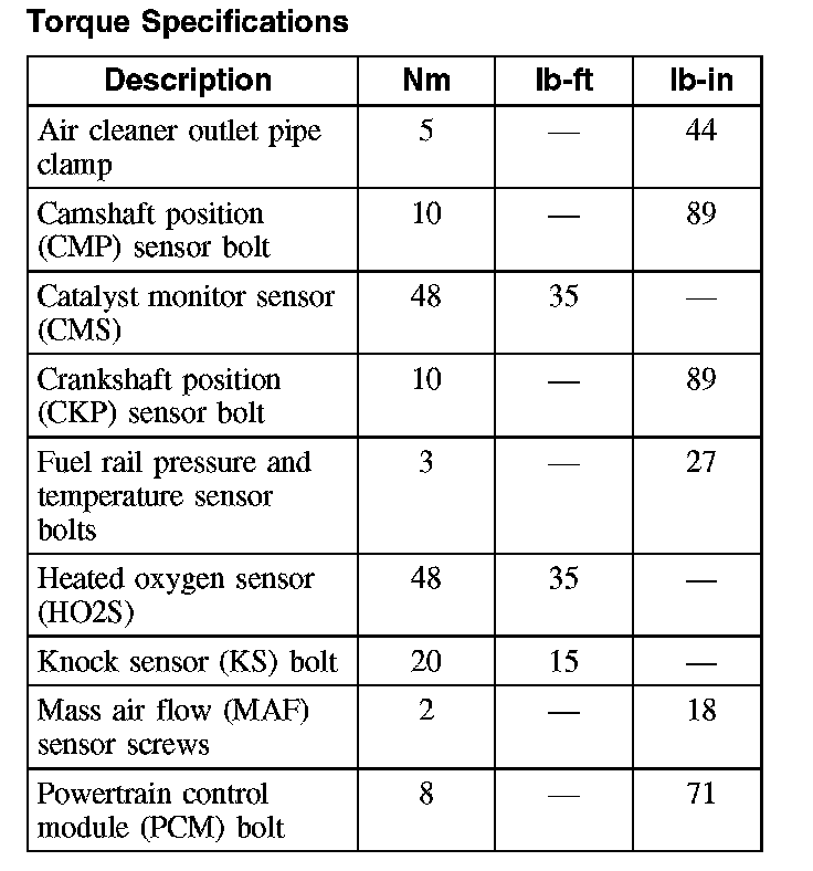 Torque Specifications: