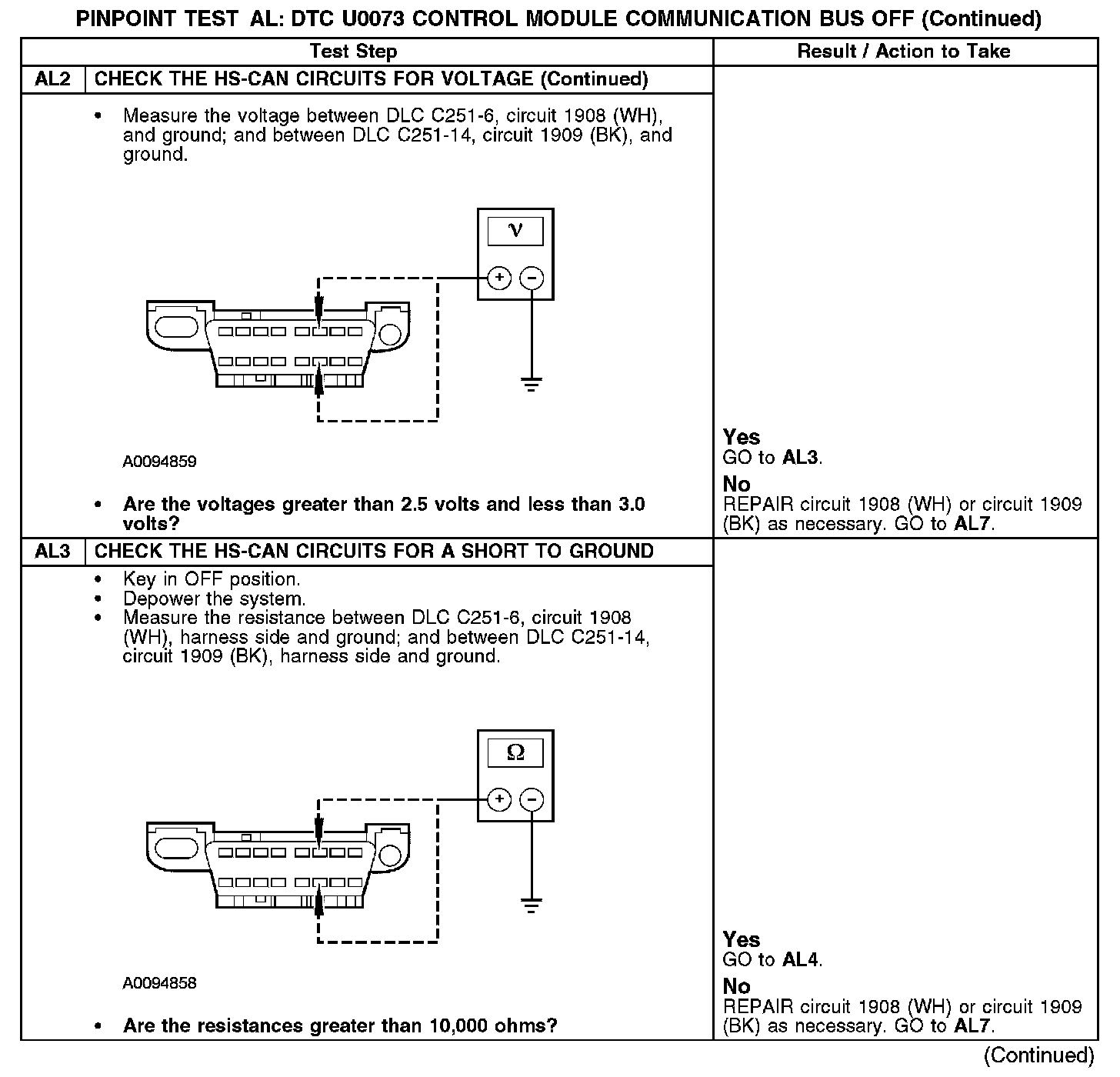 PINPOINT TEST AL: DTC U0073 - CONTROL MODULE COMMUNICATION BUS OFFAL1-AL2: