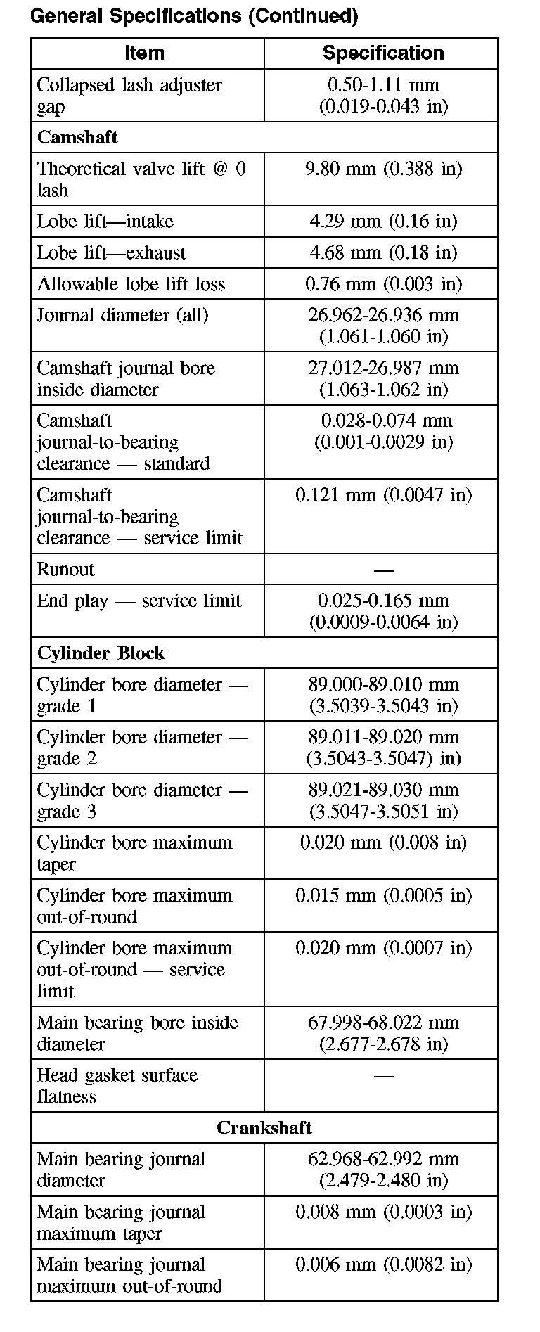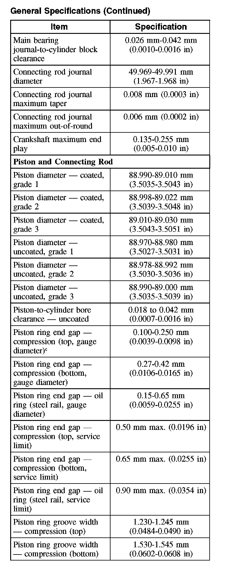 General Specifications