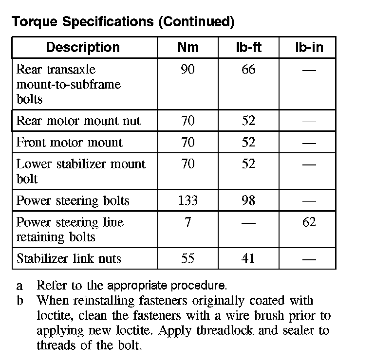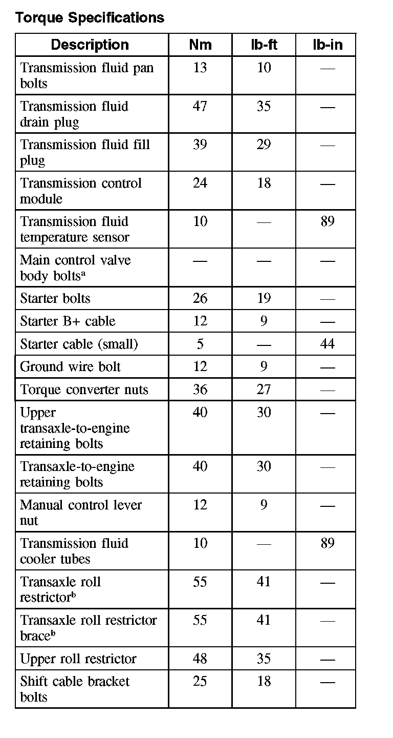 Torque Specifications: