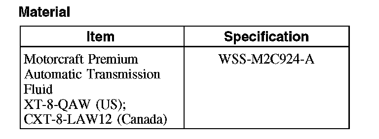 CAUTION: MERCON (R), MERCON (R)V MERCON (R)SP, Motorcraft Premium Automatic Transmission Fluid and Motorcraft Continuously Variable Chain Type Transmission Fluid are not interchangeable transmission fluids. The use of any fluid other than what is recommended for this transmission will cause transmission damage.