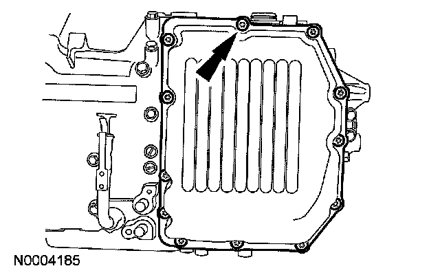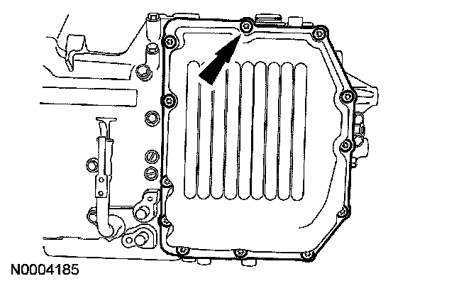 5. Remove the transmission fluid pan bolts and remove the pan.