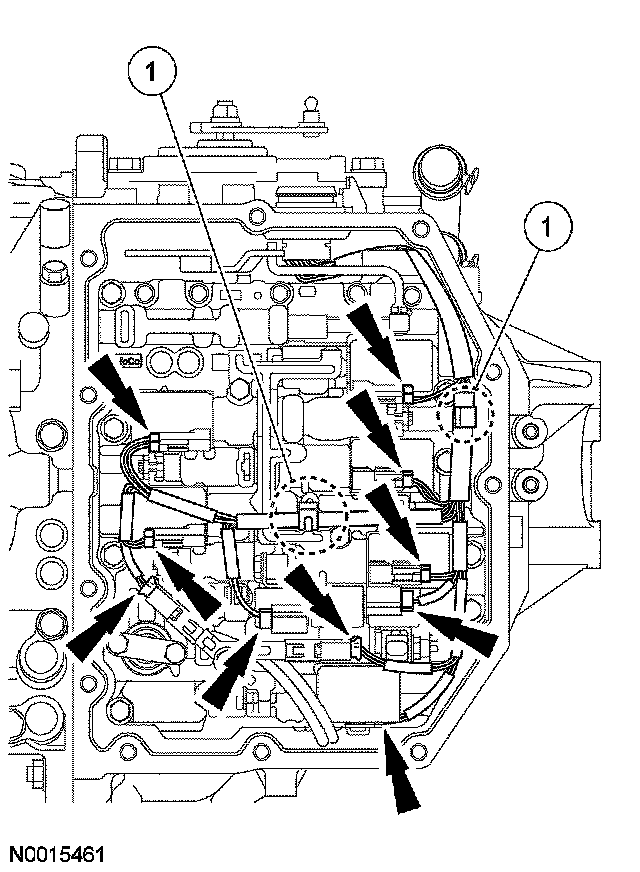 - Disconnect the 8 solenoid connectors and the 2 speed sensor connectors.