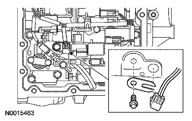 9. Remove the bolt and the lock plate and pull out the transmission fluid temperature (TFT) sensor.