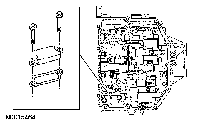 1. CAUTION: When installing the main control valve body, place the wire harness in the open space of the separate plate being careful not to pinch the harness. Damage to the harness will occur.