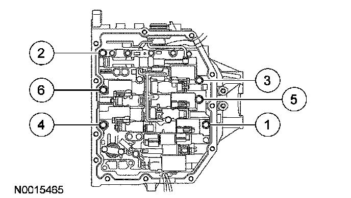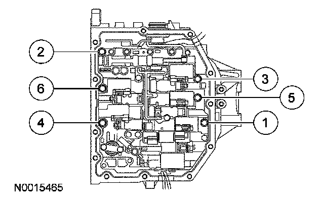 11. Remove the 6 main control valve body bolts in the sequence shown.