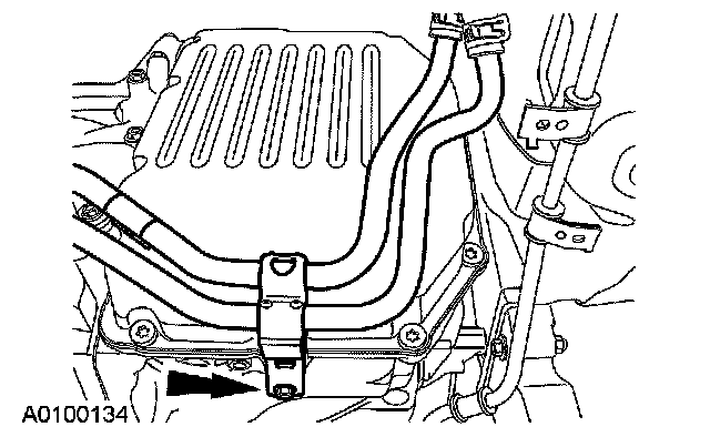 4. Disconnect the transmission fluid cooler tube bracket and position the tubes aside.