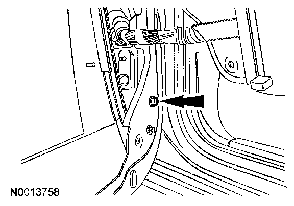 3. Remove the door glass track bolt.