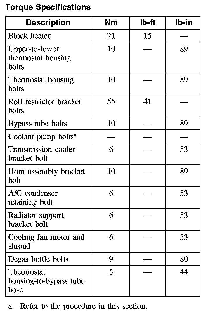 Torque Specifications: