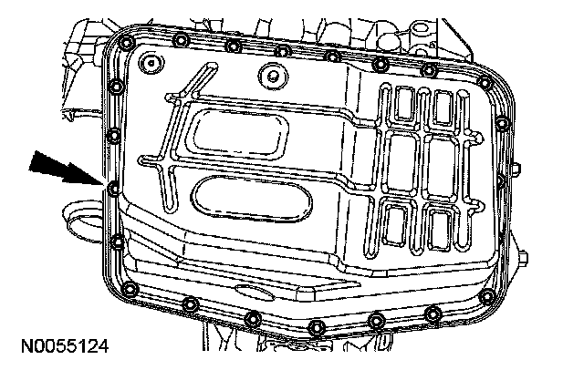 6. Remove and discard the transmission fluid pan gasket.