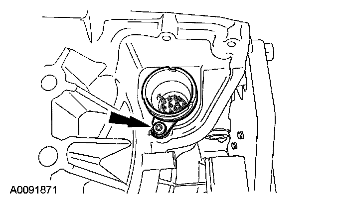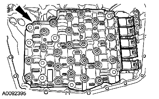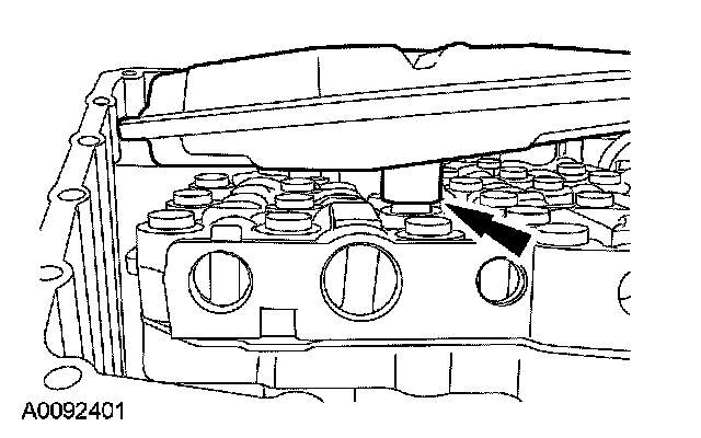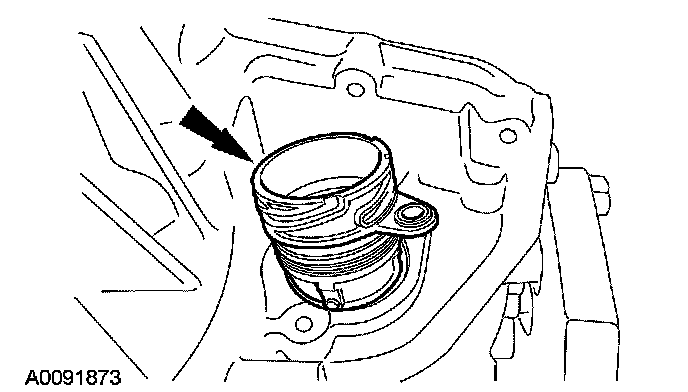10. CAUTION: Make sure that the transmission fluid filter pickup tube seal was removed from the bore when the transmission fluid filter was removed. Failure to remove the seal prior to installing the new transmission fluid filter will result in transaxle failure.