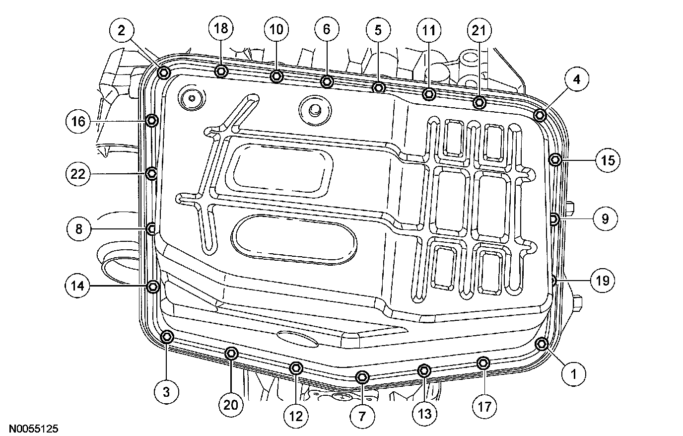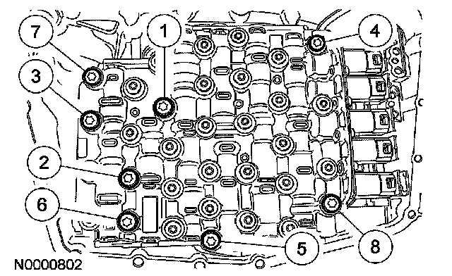 6. Tighten the mechatronic bolts in the sequence shown, in 2 stages.