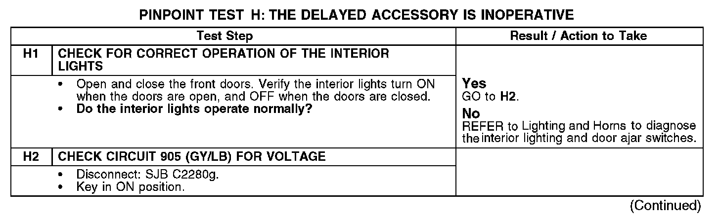 PINPOINT TEST H: THE DELAYED ACCESSORY IS INOPERATIVEH1-H2: