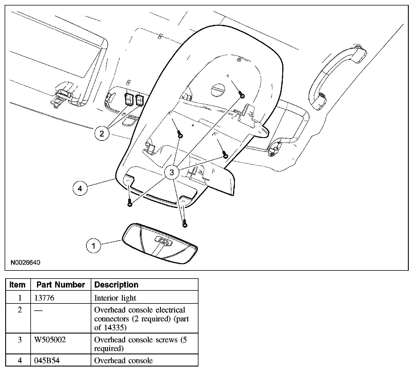 9. NOTE: Make sure the overhead console retaining plate, which is attached to the upper surface of the headliner, is correctly installed.