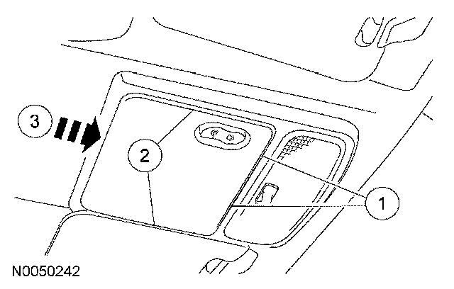 4. CAUTION: To avoid damage, the overhead console trim panel must only be pulled downwards enough to release the retaining clips.