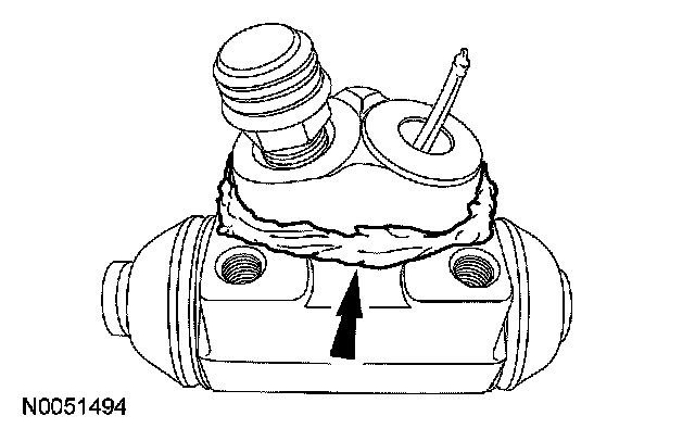 6. CAUTION: Prior to installing the wheel cylinder, apply a bead of sealant to the wheel cylinder as shown.