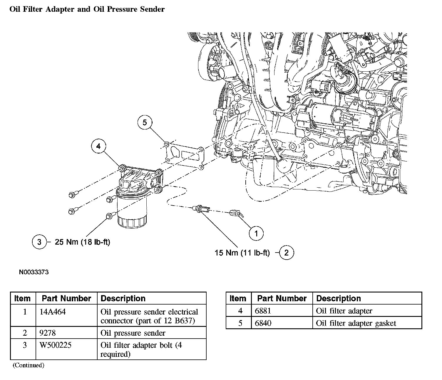 Oil Filter Adapter and Oil Pressure Sender: